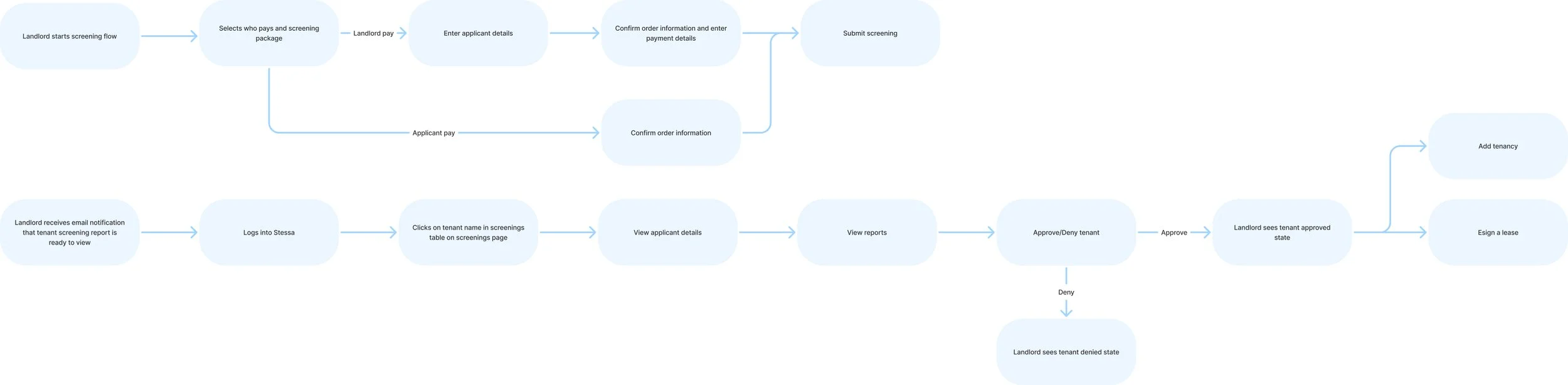 Before designing individual screens, I mapped the full user flow for both the landlord and applicant paths. This helped me identify the key branching points early and ensure the experience held together end-to-end before getting into details.